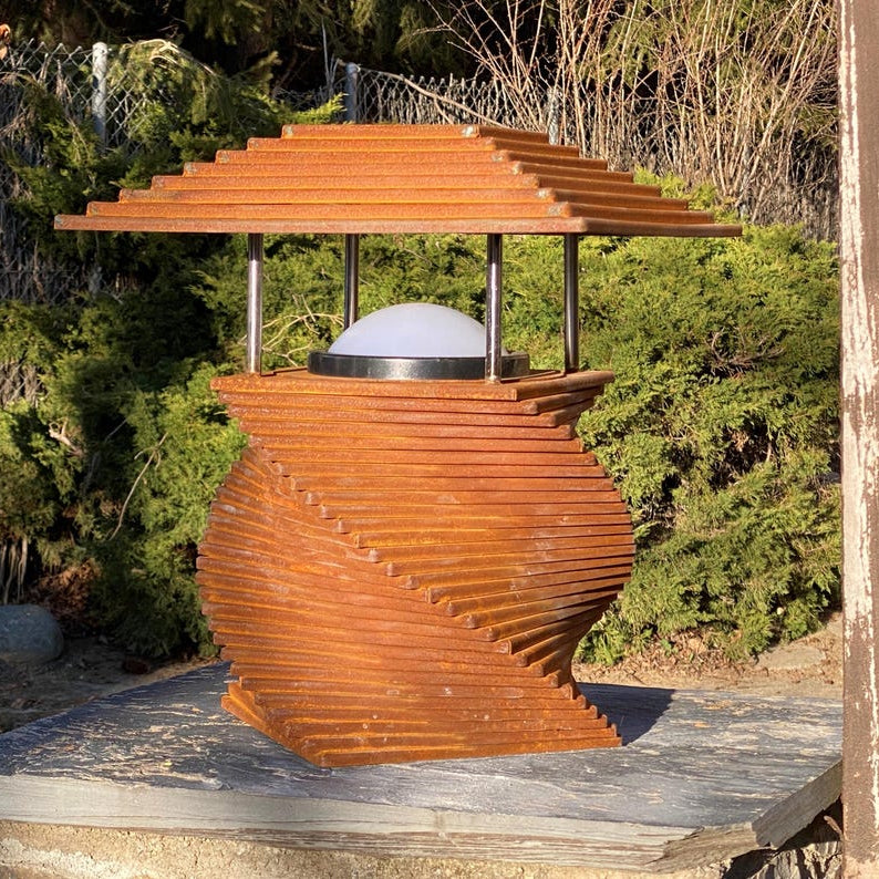 Lámpara de jardin solar oxido natural corten. Potente Baliza o bolardo de exterior con sensor de movimiento. Sin cables. Luz blanco cálido.