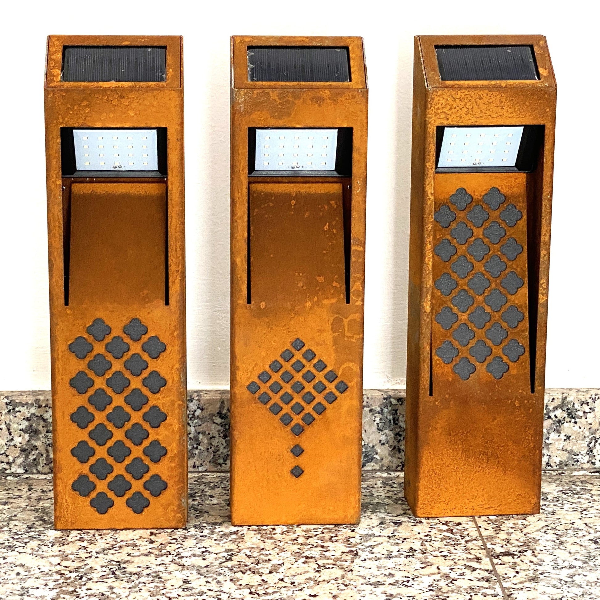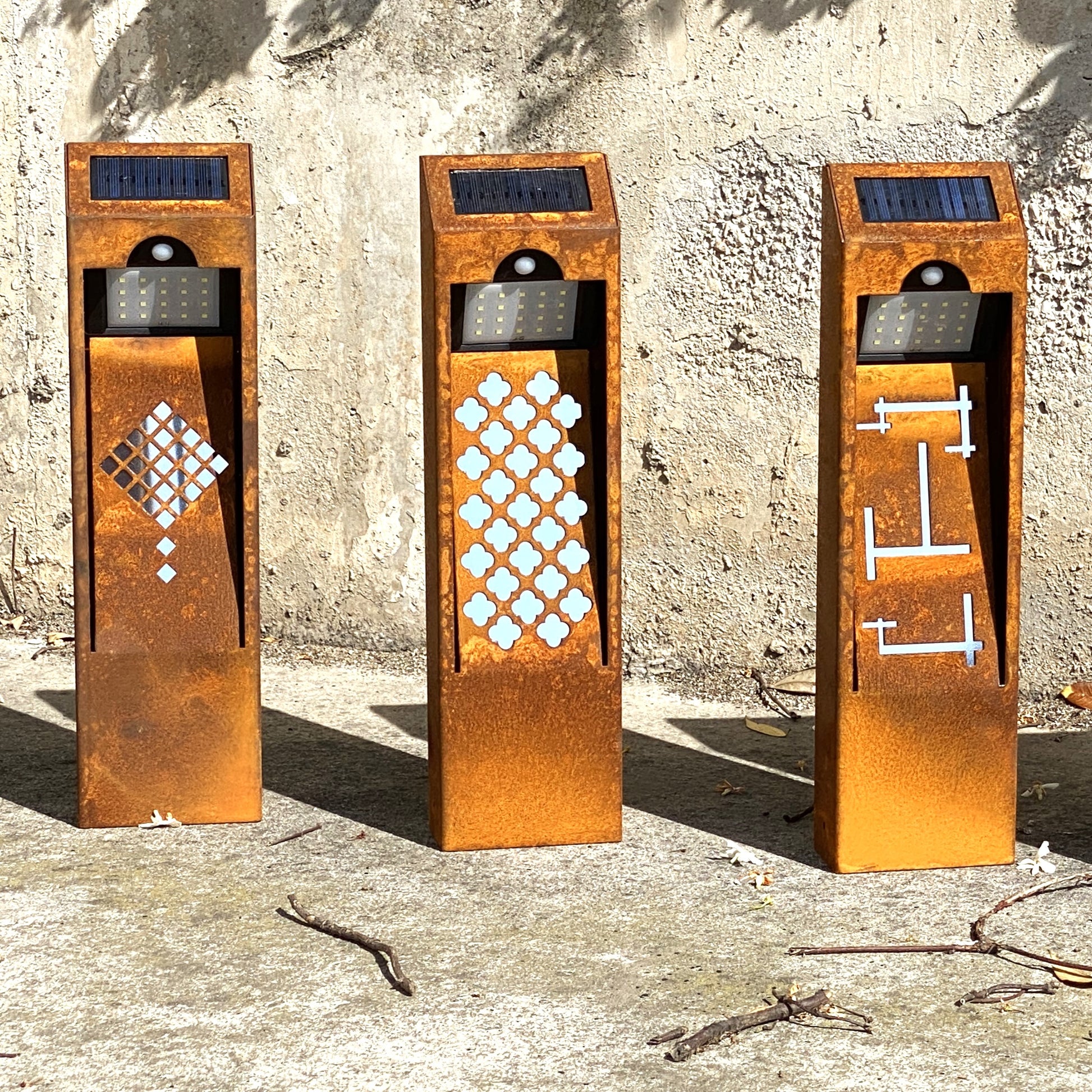 Luz Solar Corten: Diseñada para embellecer tu espacio, esta lámpara está hecha de acero corten, lo que le da una oxidación natural que se integra perfectamente en cualquier jardín. Su diseño único y elegante no requiere mantenimiento de por vida, ¡un toque duradero y sin complicaciones!