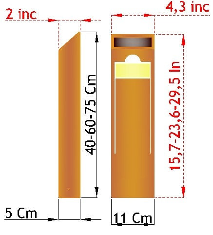 Diseño exclusivo y versátil: Disponible en tres alturas (40 cm, 60 cm y 75 cm) para adaptarse a caminos, terrazas y zonas ajardinadas.